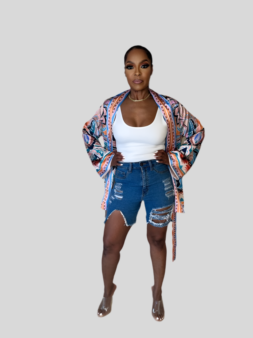 Major Cut Out High Waist Distressed Denim Shorts